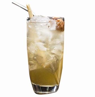 Preparación: En el shaker se ponen todos los ingredientes, excepto el agua mineral, se agita hasta mezclar y enfriar, se sirve en copa cocktail con todo y hielo, se termina de llenar la copa con el agua mineral. Se adorna con un sol de limón flotando sobre el hielo.